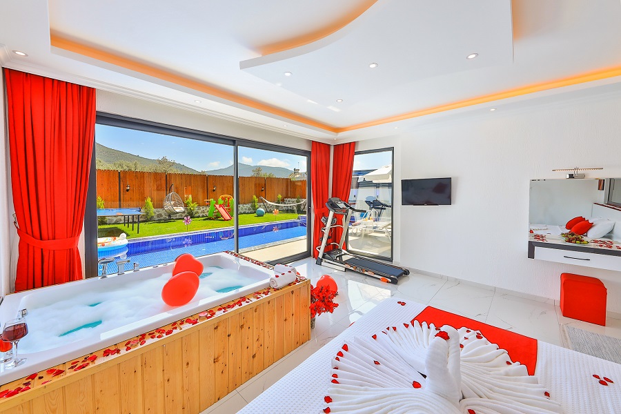 1.Yatak Odası: Oda içerisinde 1 çift kişilik yatak, jakuzi, klima, TV ve banyo - WC bulunmaktadır.