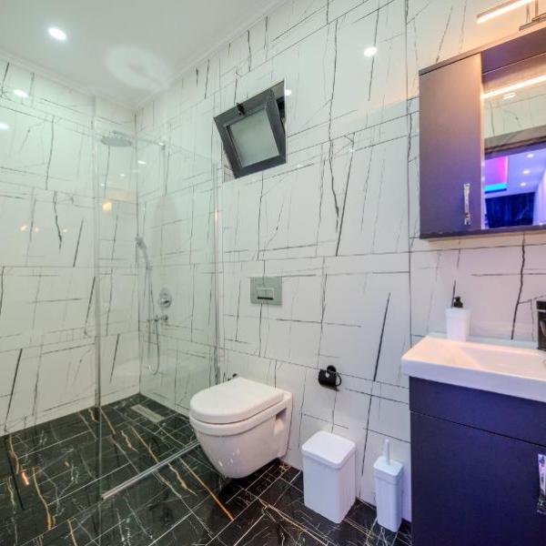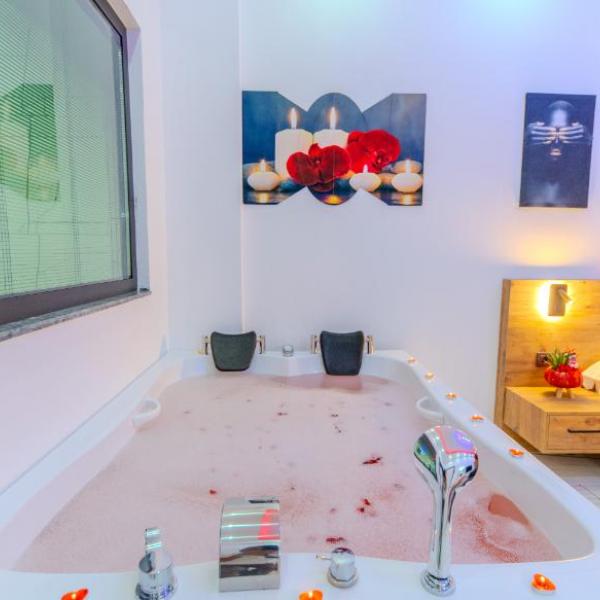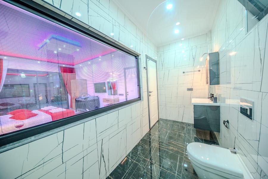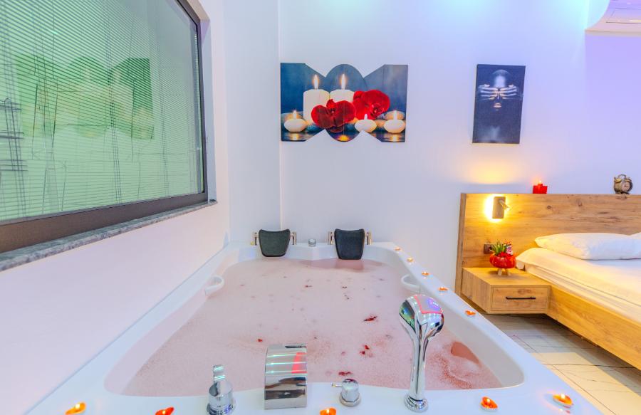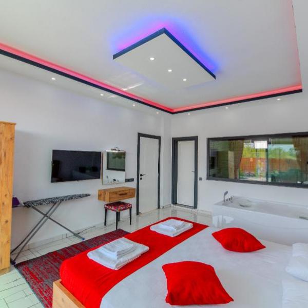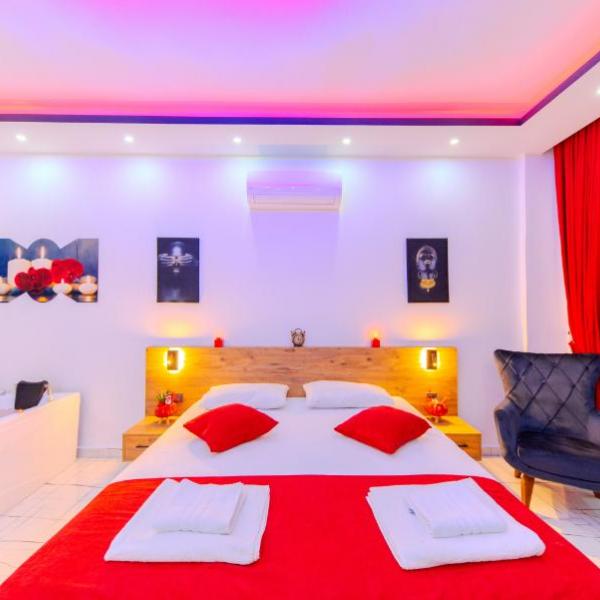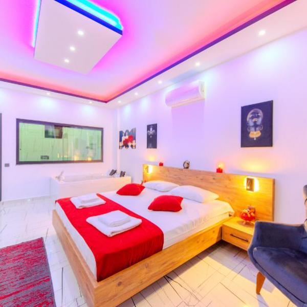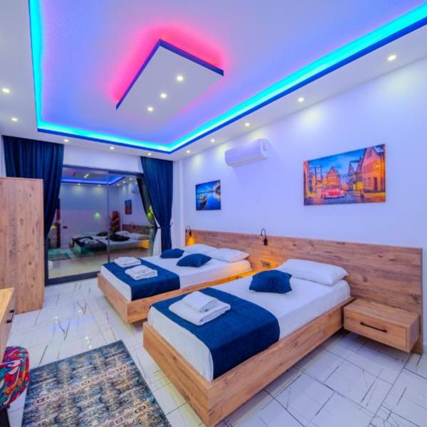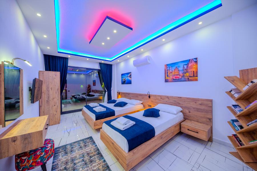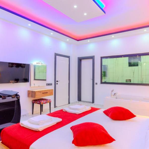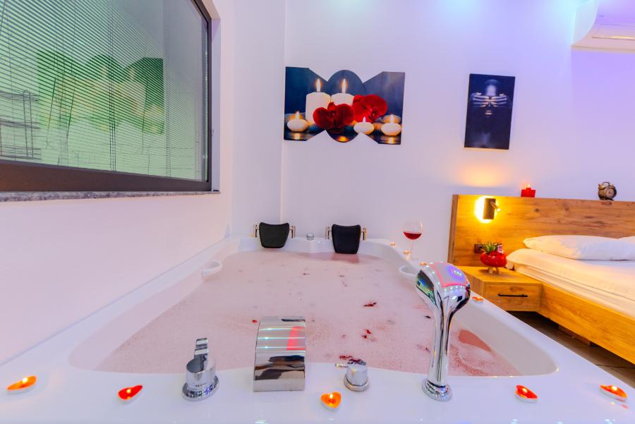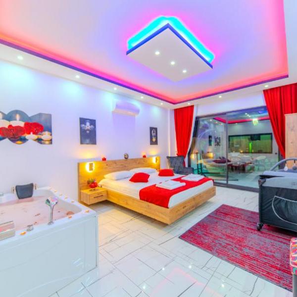 1. Yatak Odası: 1 çift kişilik yatak, jakuzi, klima, TV, banyo,