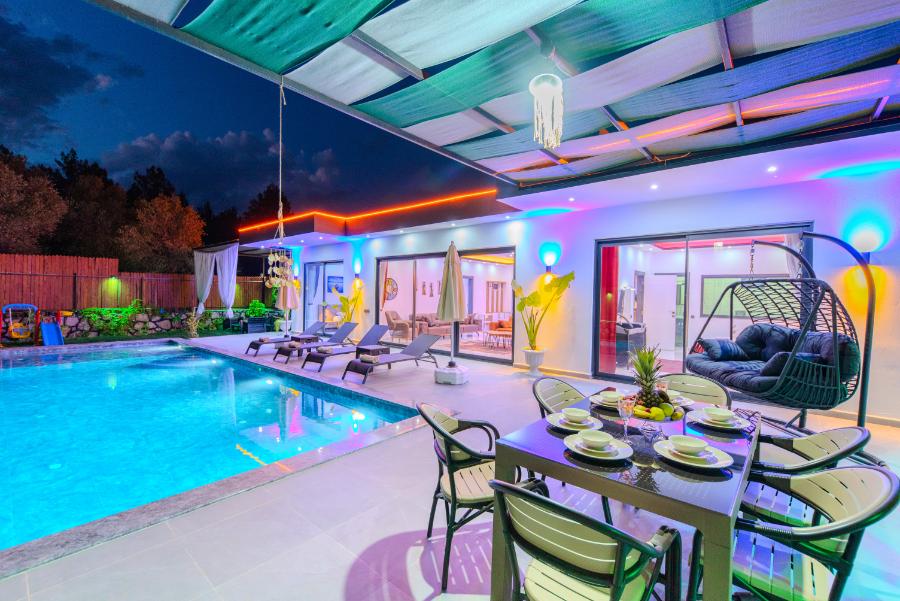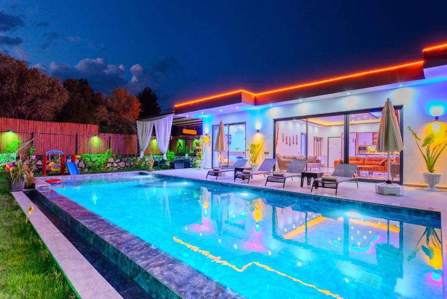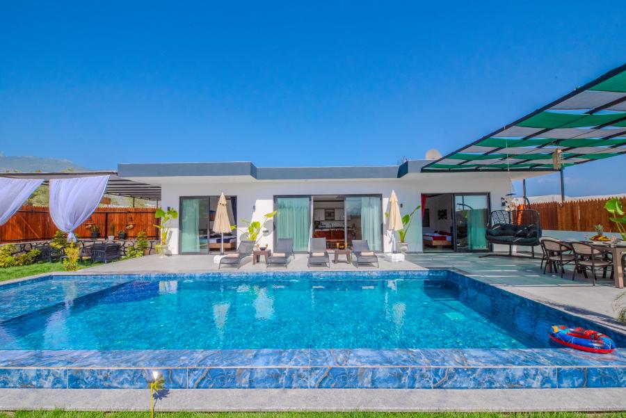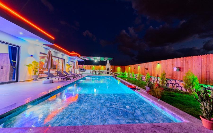 Villa Nirvana; Kalkan, Çavdır mevkiinde bulunan tatil villaları içinde en fazla tercih edilen villalarımızdan bir tanesidir. Villa, 2 yatak odası, özel yüzme havuzu ve özel bahçesi ile 4 kişilik tesettürlü aileler ve balayı çiftleri için ideal bir villa tatili alternatifidir. Son derece modern olarak dizayn edilip lüks mobilyalar ile süslemiş olduğumuz Villa Nirvana, bir tatil villasında ihtiyaç duyabileceğiniz her türlü konfora sahiptir.