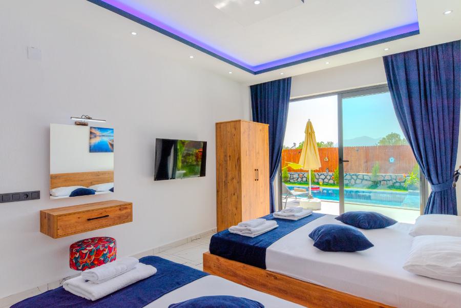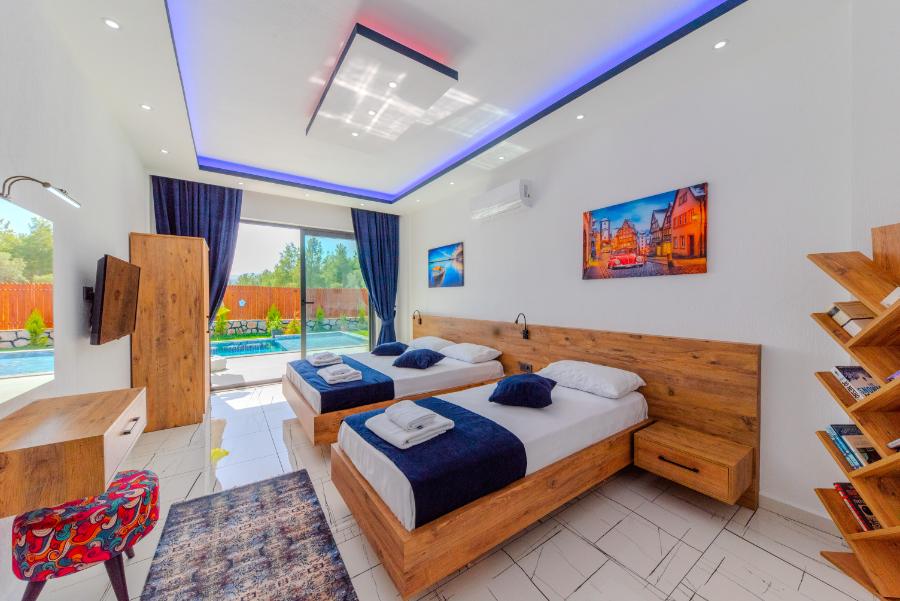 2. Yatak Odası: 2 tek kişilik yatak, 1 çift kişilik yatak, klima, banyo,