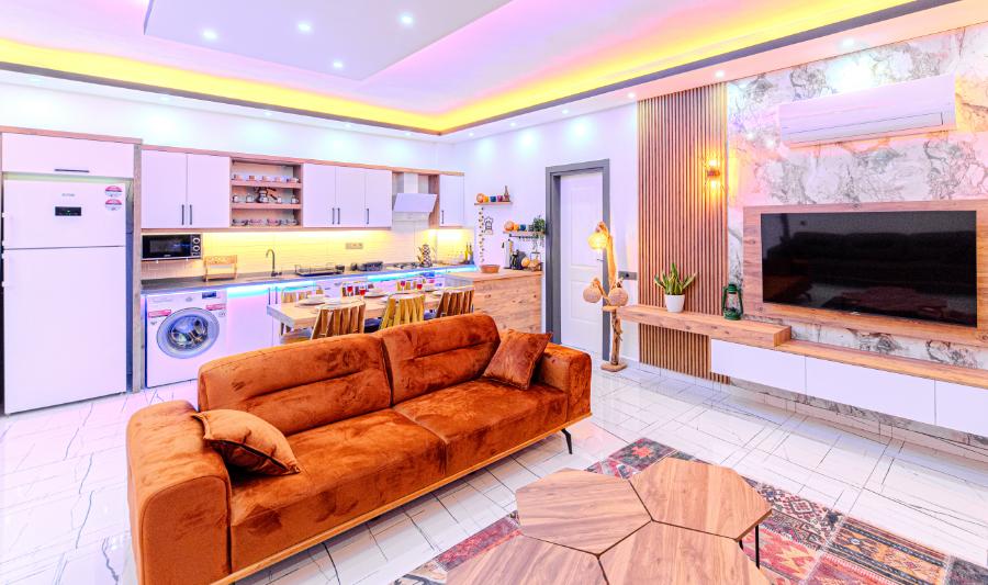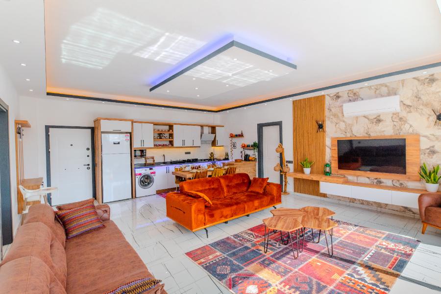 Salon: Oturma grubu, uydu alıcı, televizyon, klima,