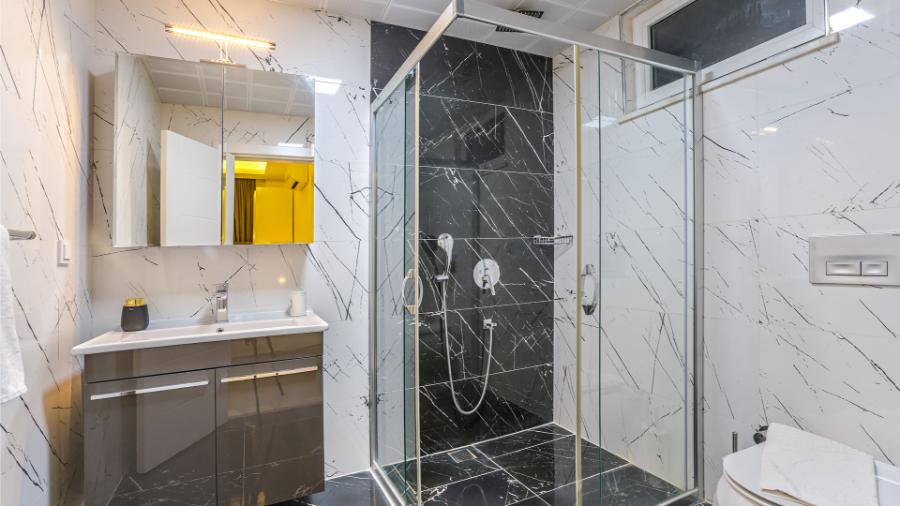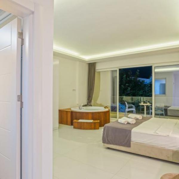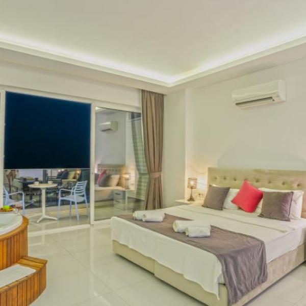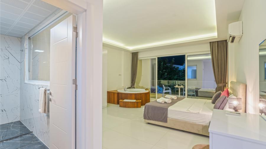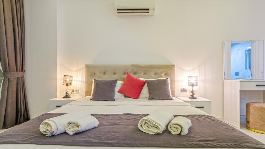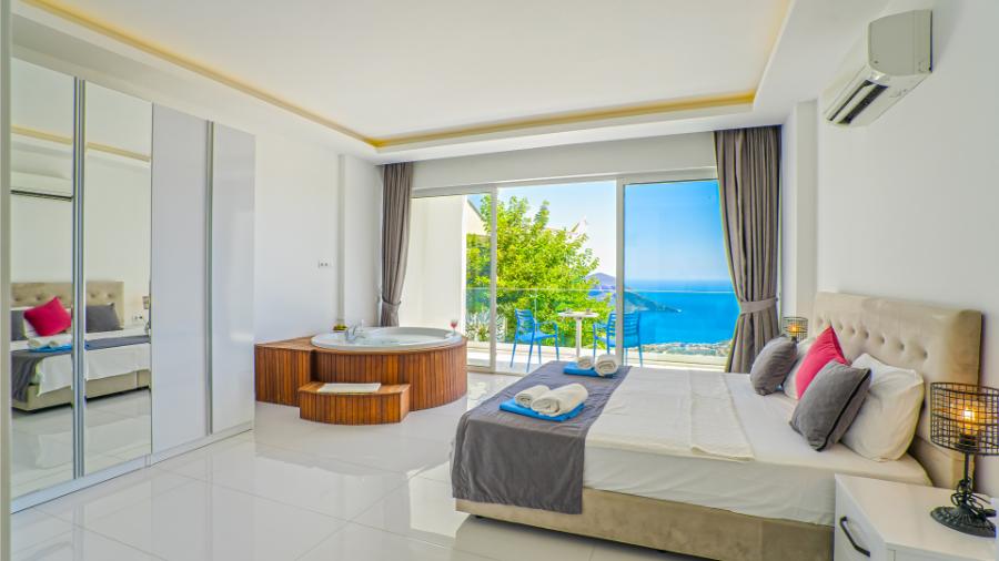 1.Yatak odası: 1 çift kişilik yatak, jakuzi, banyo, elbise dolabı, klima, komodin ,