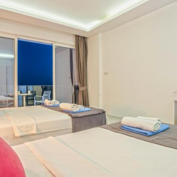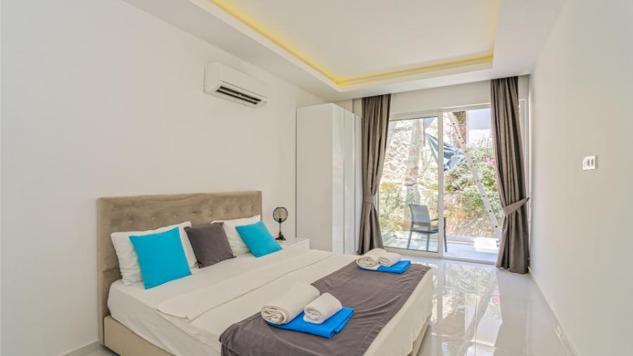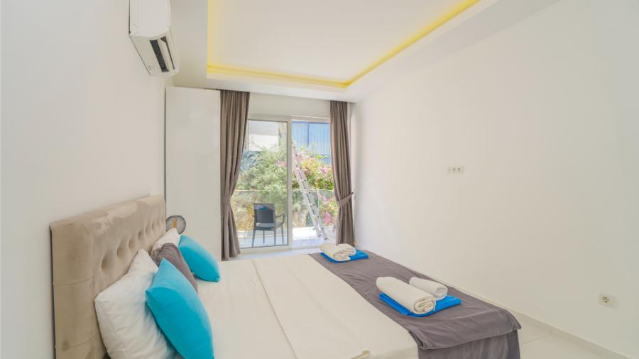2.Yatak odası: 1 çift kişilik yatak ve tek kişilik yatak, banyo, elbise dolabı, klima, komodin,