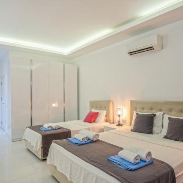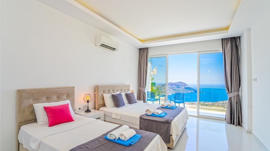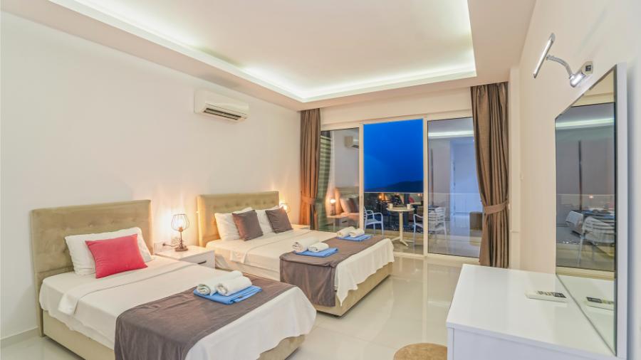 3.Yatak odası: 2 adet tek kişilik yatak, banyo, elbise dolabı, klima, komodin,