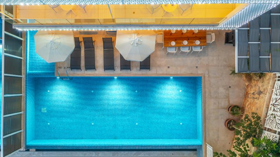 Havuz Ölçüleri: Boy: 11,00 m, En: 4,00 m, Derinlik: 1,55 cm - Havuz alanı dışarıdan görünmektedir.