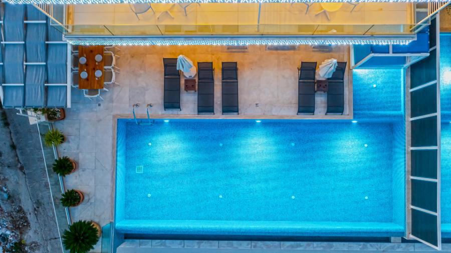 Havuz Ölçüleri: Boy: 9,00 m, En: 3,50 m, Derinlik: 1,55 cm - Havuz alanı dışarıdan görünmemektedir.