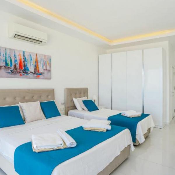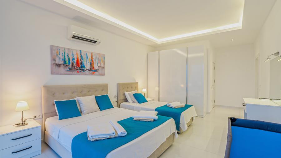 3.Yatak odası: 2 adet tek kisilik yatak, banyo, elbise dolabi, klima, komidin,