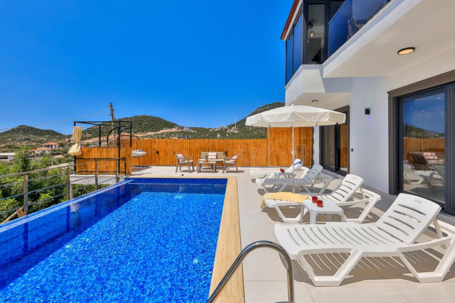 Villa Seyran Sısla, Antalya'nın Kaş ilçesine bağlı olan Bayındır Mevkii'nde bulunan deniz manzaralı tatil villalarından bir tanesidir. Villa, 2 adet yatak odası, özel havuzu, müstakil bahçesi ve kusursuz konumu ile 4 kişilik aileler ve balayı çiftleri için ideal bir villa tatili seçeneği olacaktır. Son derece modern olarak dizayn edilip ultra lüks mobilyalar ile döşenmiş olan Villa Seyran Sısla bir tatil villasında ihtiyaç duyabileceğiniz her türlü konfora sahiptir.