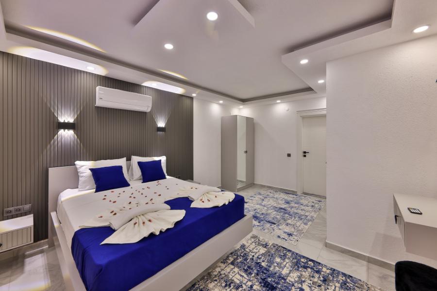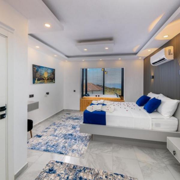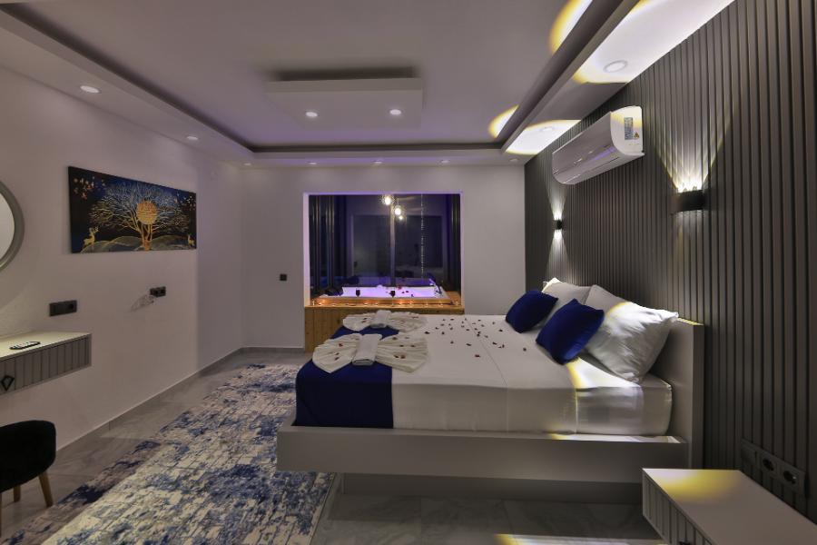 1. Yatak Odası: 1 Çift kişilik yatak, klima, komodin, elbise dolabı, jakuzi, banyo,