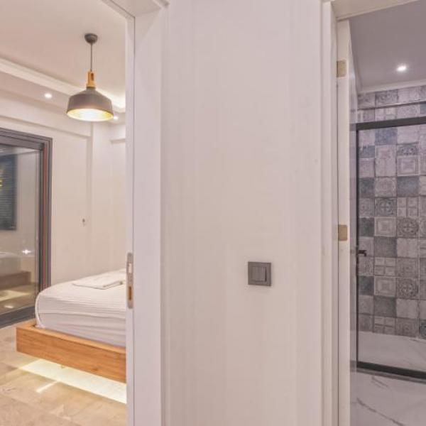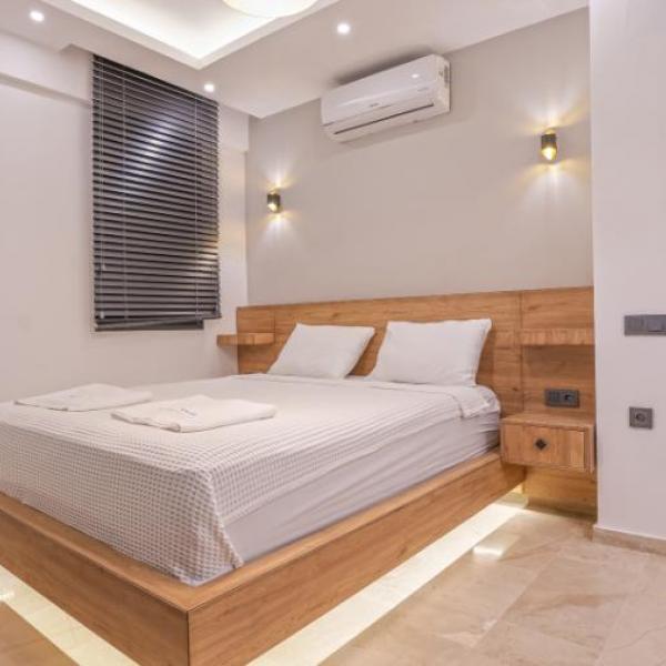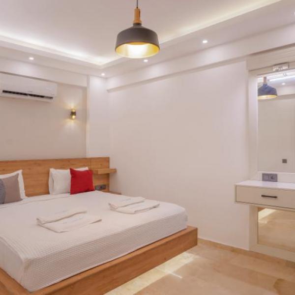 1. Yatak Odası: 1 çift kişilik yatak, elbise dolabı, makyaj masası, klima ve banyo,