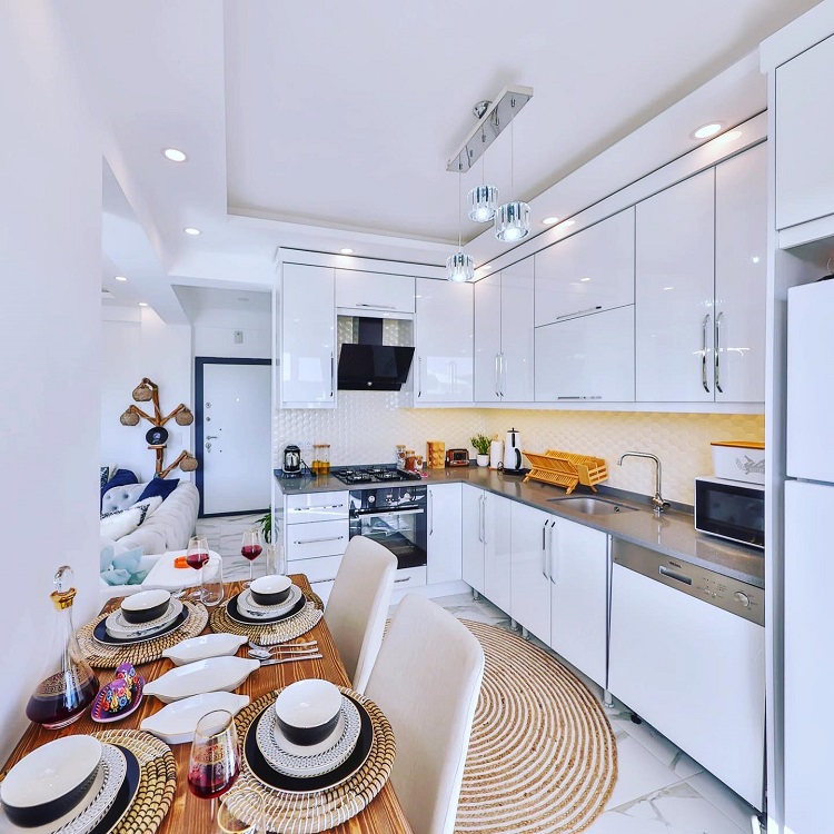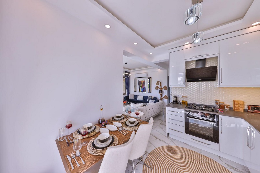 Mutfak: Buzdolabı, yemek masası, ankastre ocak seti, buzdolabı, mikrodalga fırın, kettle (su ısıtıcısı), ekmek kızartma makinesi ve rahatınız için düşünülmüş tüm mutfak envanterleri mevcuttur.