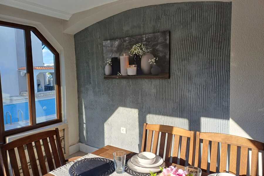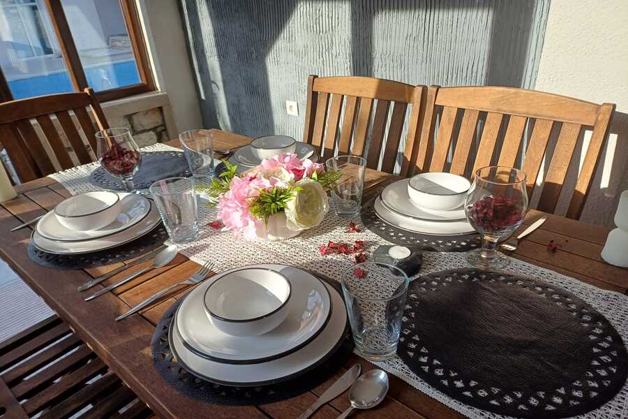 * Resimler yalnızca örnek villayı gösterir. Tatil villalarımızdaki mobilya, havlu ve çarşaflar az da olsa değişiklik gösterebilir ancak resimlerde gösterilen kalitede olacaktır.
