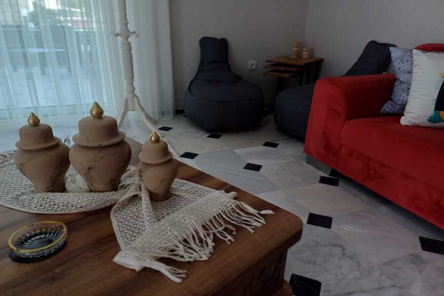 Salon: Oturma grupları, Led Tv, Klima, yemek masası,