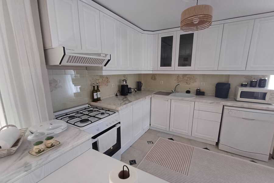 Mutfak: Buzdolabı, yemek masası, ankastre ocak seti, buzdolabı, mikrodalga fırın, kettle (su ısıtıcısı), ekmek kızartma makinesi ve rahatınız için düşünülmüş tüm mutfak envanterleri mevcuttur.
