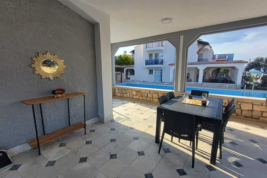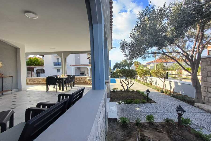 Çeşme Villalarımız, İzmir'de villa kiralama talepleriniz için sizlere önerebileceğimiz İzmir'in Çeşme ilçesine bağlı olan ÇiftlikKöy 'de bulunan ve tatil villaları içinde en fazla tercih edilen deniz manzaralı villalarımızdan bir tanesidir. Villa, 3 yatak odası, ortak yüzme havuzu, müstakil bahçesi, çocuk havuzu, kusursuz doğa manzarası, denize ve plaja yakın bir konumu ile 8 kişilik geniş aileler ve arkadaş grupları için ideal villa tatili alternatifi olacaktır. Son derece modern olarak dizayn edilip lüks mobilyalar ile döşenmiş olan Çeşme Villaları bir tatil villasında ihtiyaç duyabileceğiniz her türlü konfora sahiptir.