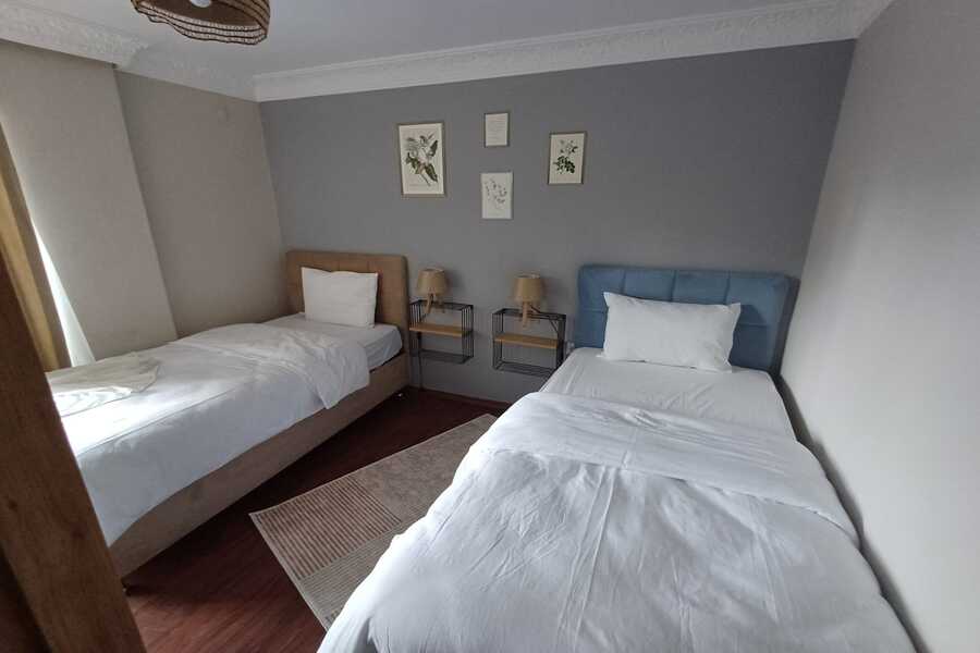 3. Yatak odası: 2 adet tek kişilik yatak, makyaj masası, komodin, ortak banyo,