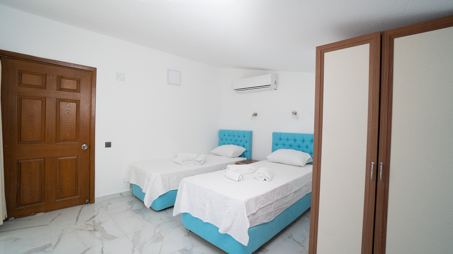 3. Yatak Odası : 2 adet tek kişilik yatak, klima, komodin, makyaj masası, elbise dolabı ve banyo tuvalet,.