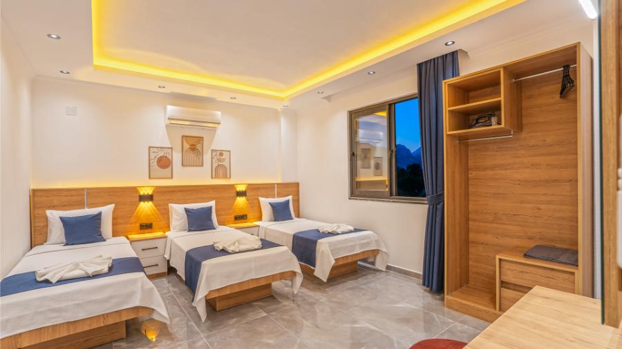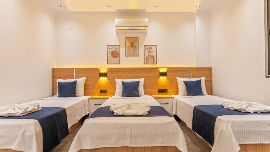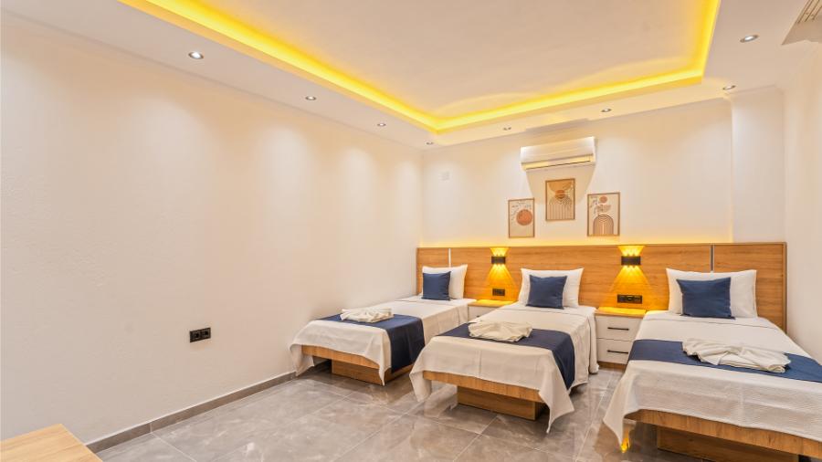 2. Yatak Odası: 3 tek kişilik yatak, klima, elbise dolabı,