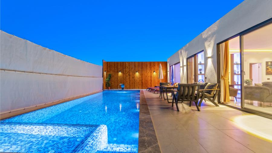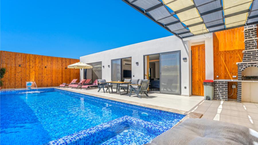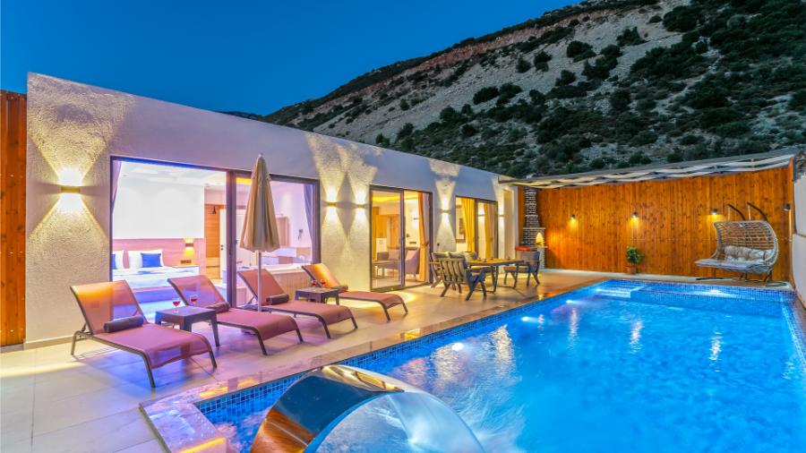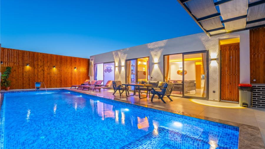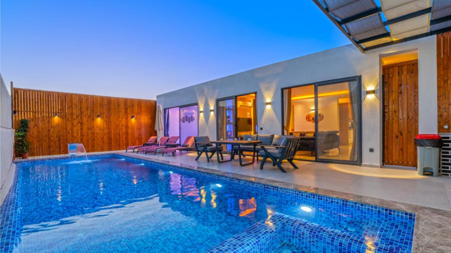 Villa Erdem; Kalkan, Bezirgan Köyü'nde bulunan tatil villaları içinde en fazla tercih edilen villalarımızdan bir tanesidir. Villa, 2 yatak odası, özel yüzme havuzu ve özel bahçesi ile 4 kişilik tesettürlü aileler ve balayı çiftleri için ideal bir villa tatili alternatifidir. Son derece modern olarak dizayn edilip lüks mobilyalar ile süslemiş olduğumuz Villa Erdem, bir tatil villasında ihtiyaç duyabileceğiniz her türlü konfora sahiptir.