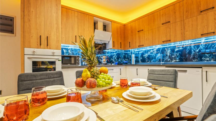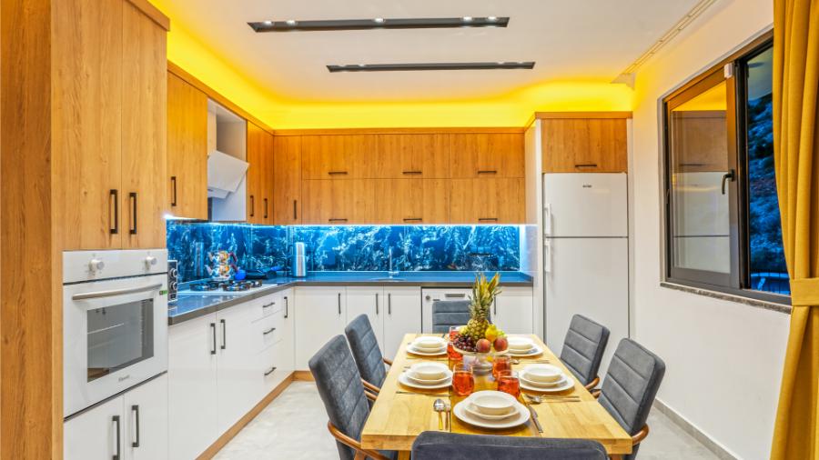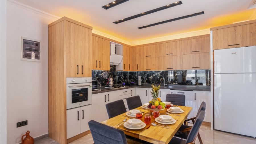 Mutfak: Buzdolabı, microdalga, bulaşık makinesi, çamaşır makinesi, ankastre fırın, kahve makinesi, mama sandalyesi, tost makinesi, ekmek kızartma makinesi, ankastre 4’lü ocak, elektrikli su ısıtıcısı(kettle), yemek masası, yemek takımı, çeşitli mutfak araç gereçleri bulunmaktadır.