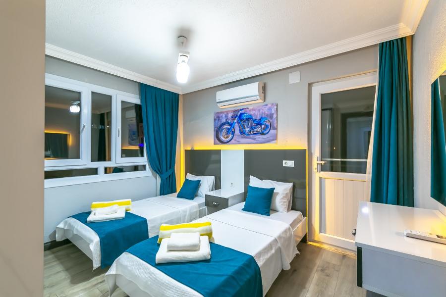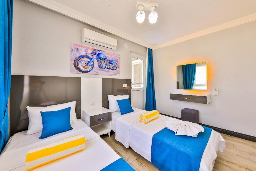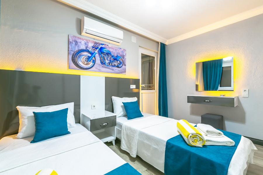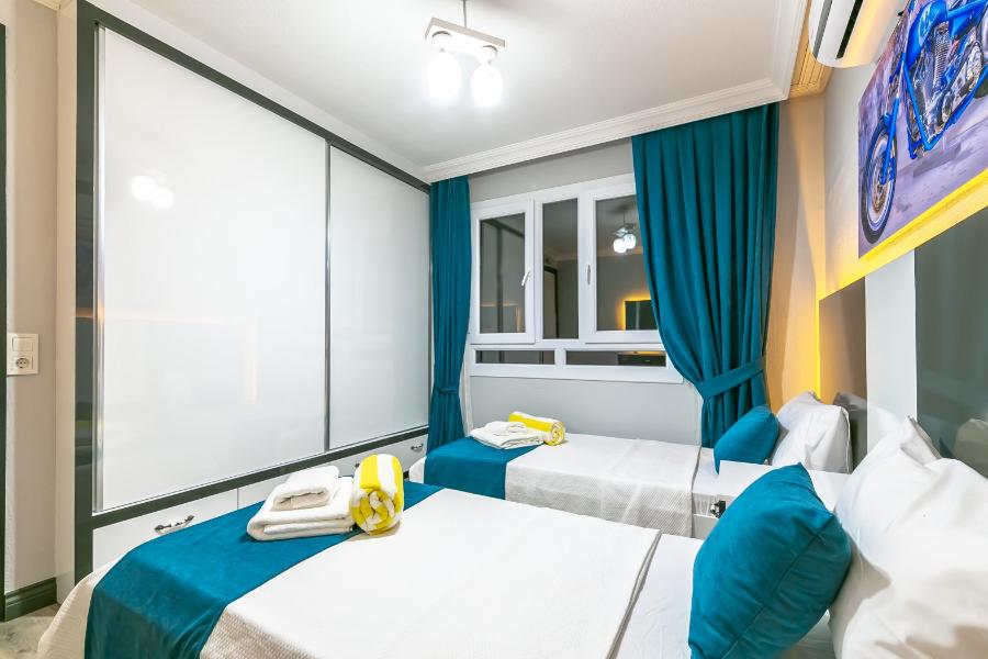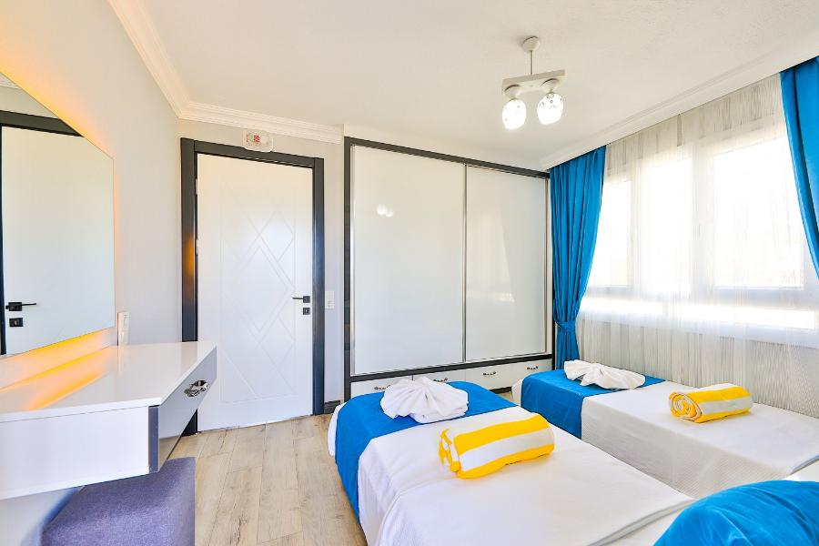 2. Yatak Odası: 2 tek kişilik yatak, klima, elbise dolabı,