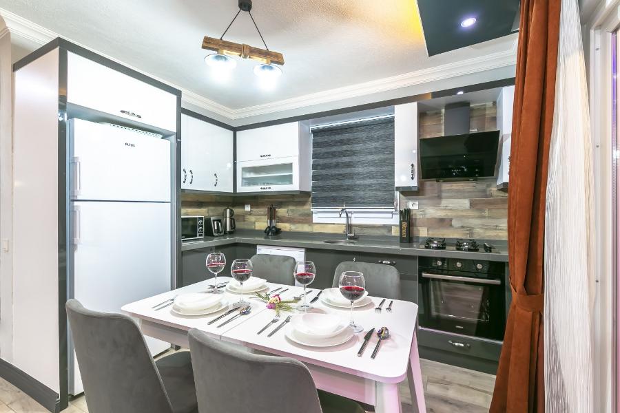 Mutfak: Buzdolabı, microdalga, bulaşık makinesi, çamaşır makinesi, ankastre fırın, kahve makinesi, mama sandalyesi, tost makinesi, ekmek kızartma makinesi, ankastre 4’lü ocak, elektrikli su ısıtıcısı(kettle), yemek masası, yemek takımı, çeşitli mutfak araç gereçleri bulunmaktadır.