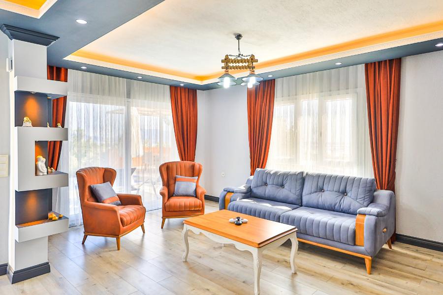 Salon: Oturma grubu, uydu alıcı, televizyon, klima,