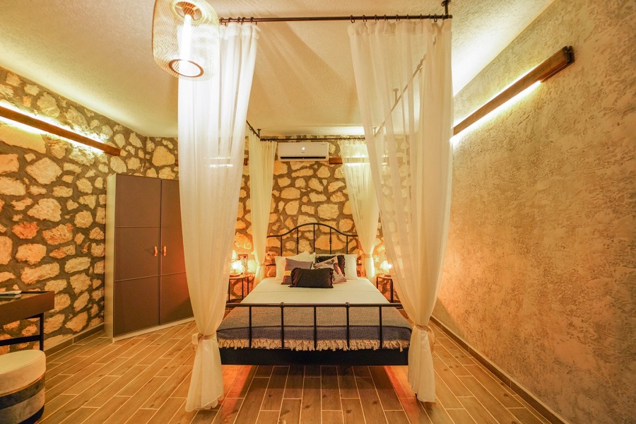 1.Yatak Odası: 1 Çift kişilik yatak, jakuzi, klima, komidin, elbise dolabı, makyaj masası, banyo,