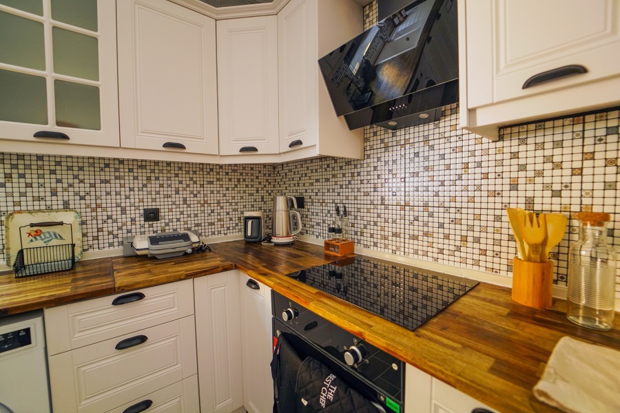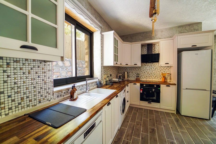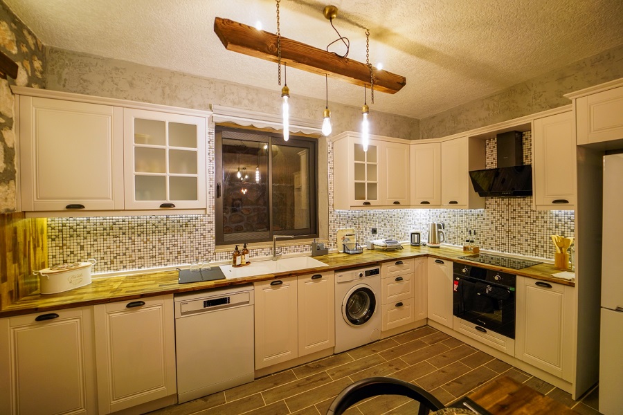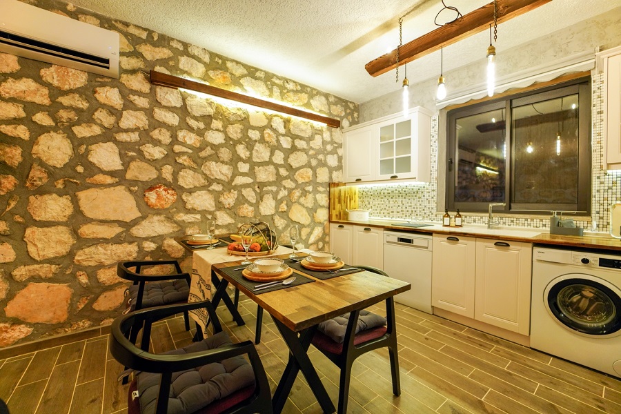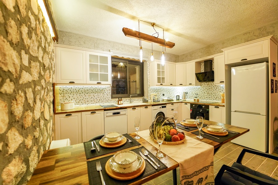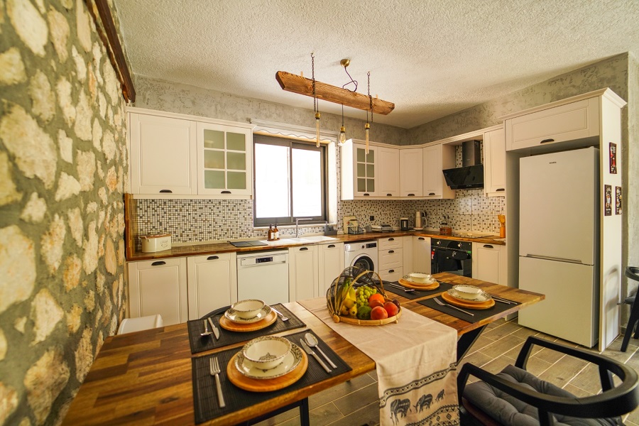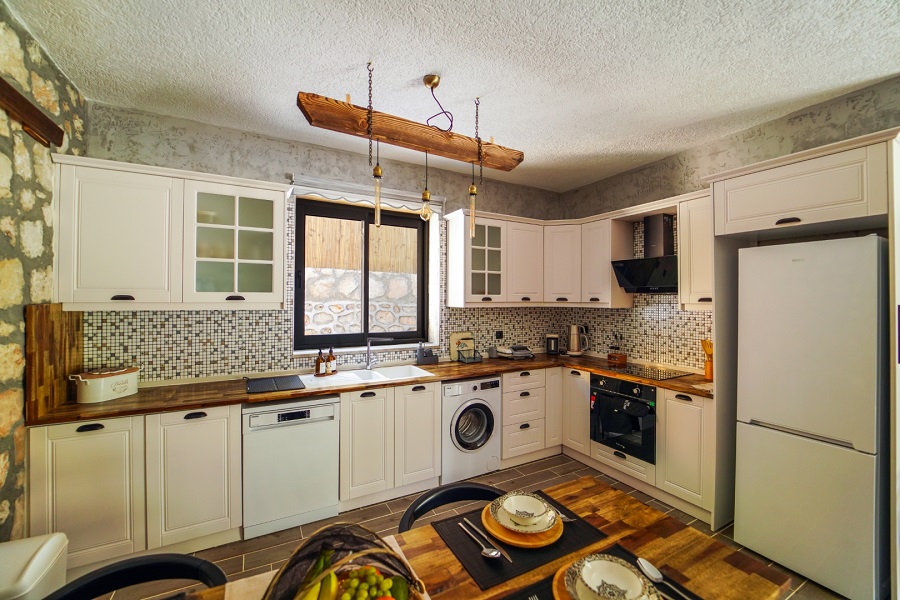 Mutfak: Buzdolabı, bulaşık makinesi, fırın, çamaşır makinesi, yemek takımı, tava-tencere, çatal-bıçak seti bulunmaktadır.