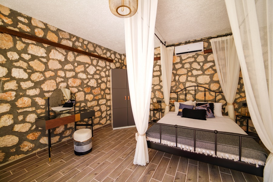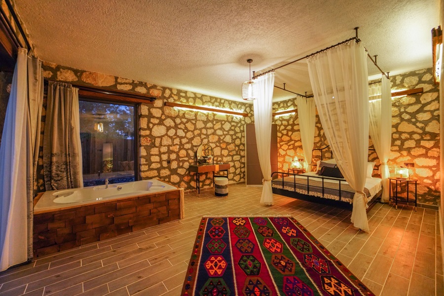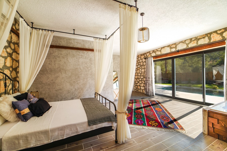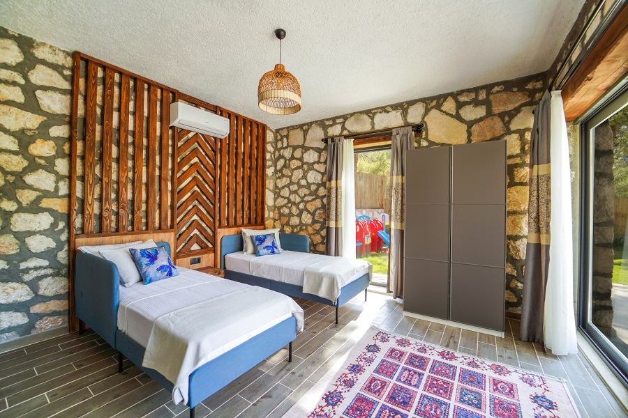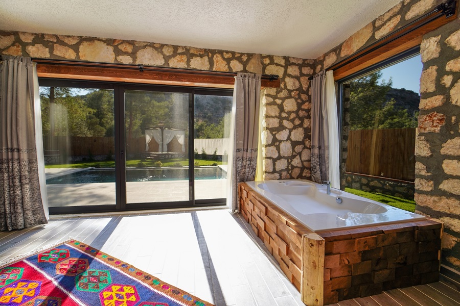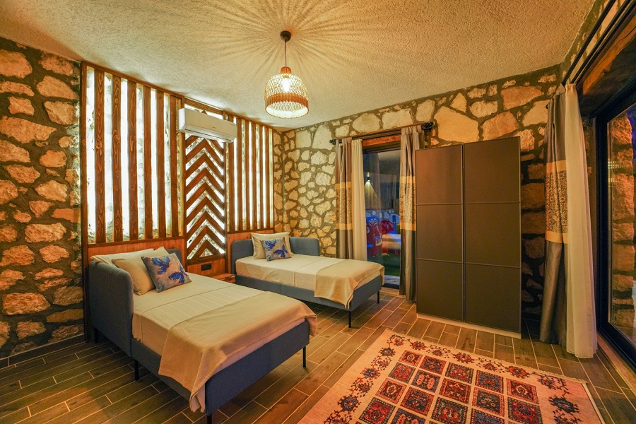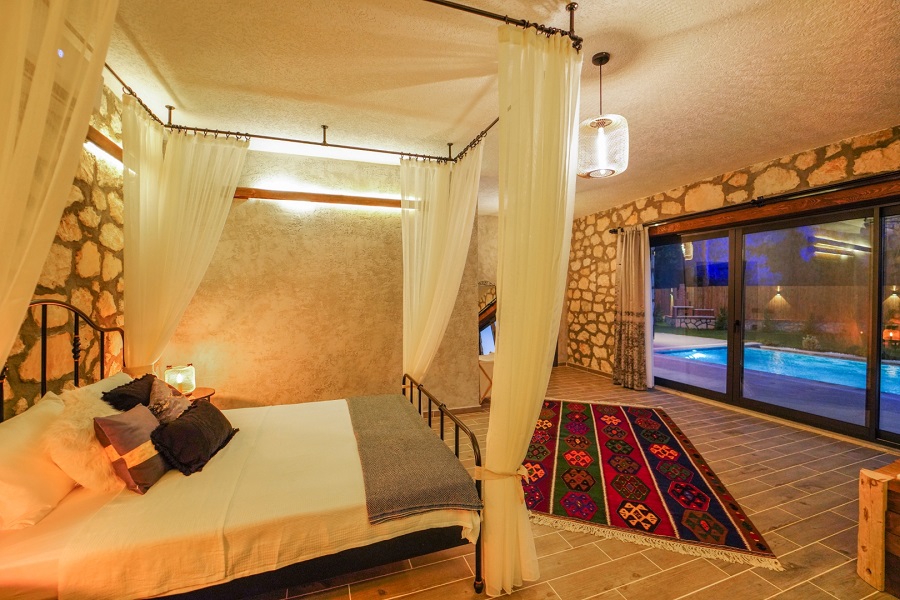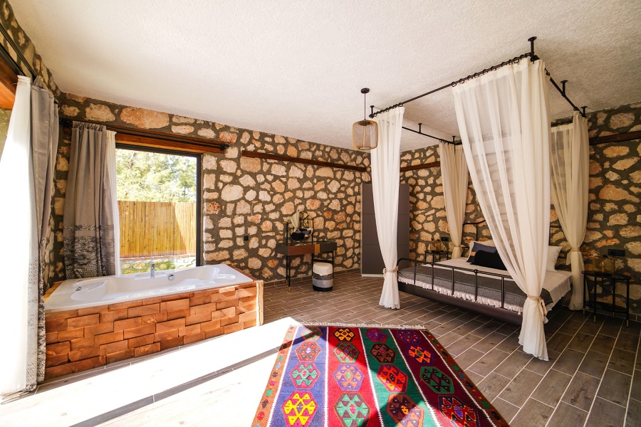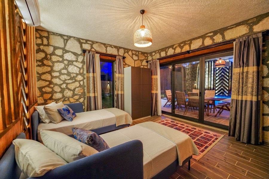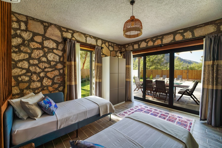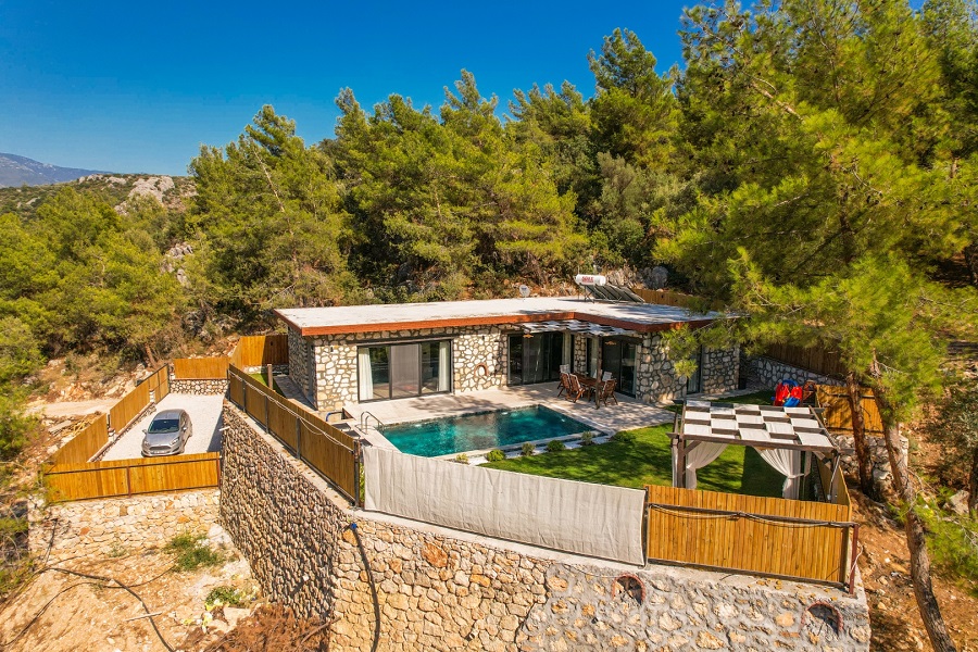 Muğla'nın Seydikemer ilçesine bağlı olan Karaköy mevkiinde bulunan Villa Taşhan, 2 yatak odası, 2 banyosu, özel yüzme havuzu ve özel bahçesi ile 4 kişilik aile ve balayı çiftleri için ideal bir tatil villa alternatifidir.