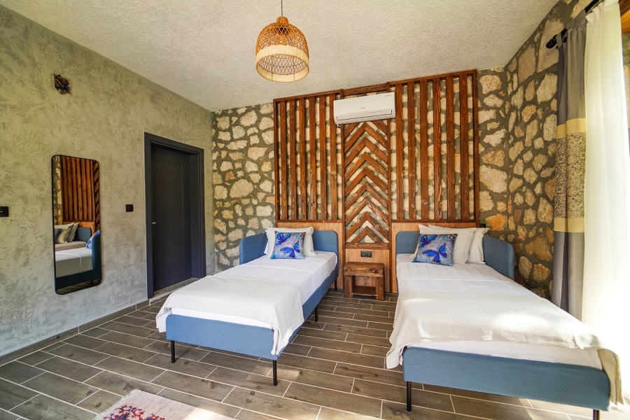 Not: Villalarımız konumu bakımından doğa içerisinde bulunduğundan düzenli olarak ilaçlama yapılmaktadır. Buna rağmen çevrede büyük ölçüde rahatsız etmeyecek kelebek, böcek, sinek vs. bulunma ihtimali vardır.