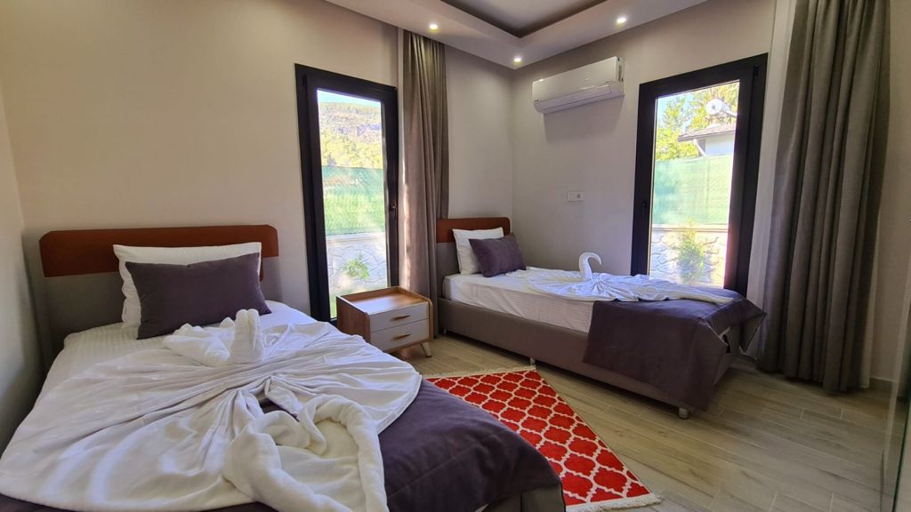 2. Yatak Odası: 2 Tek Kişilik Yatak + Elbise Dolabı + Komodin + Klima + Ebeveyn Banyo