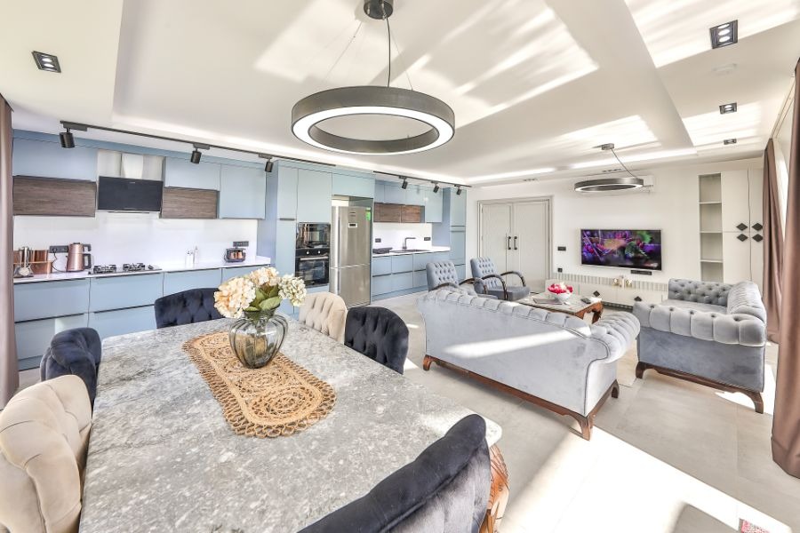 Mutfak: Amerikan mutfak bulunmaktadır. Mutfakta mikrodalga fırın, bulaşık makinası, ankastre fırın, buzdolabı, çamaşır makinası, ankastre 4’lü ocak, elektrikli su ısıtıcı kettle, ekmek kızartma makinası, tencere ve tava takımı, yemek takımı, kaşık ve çatal seti ve bardaklar bulunmaktadır.