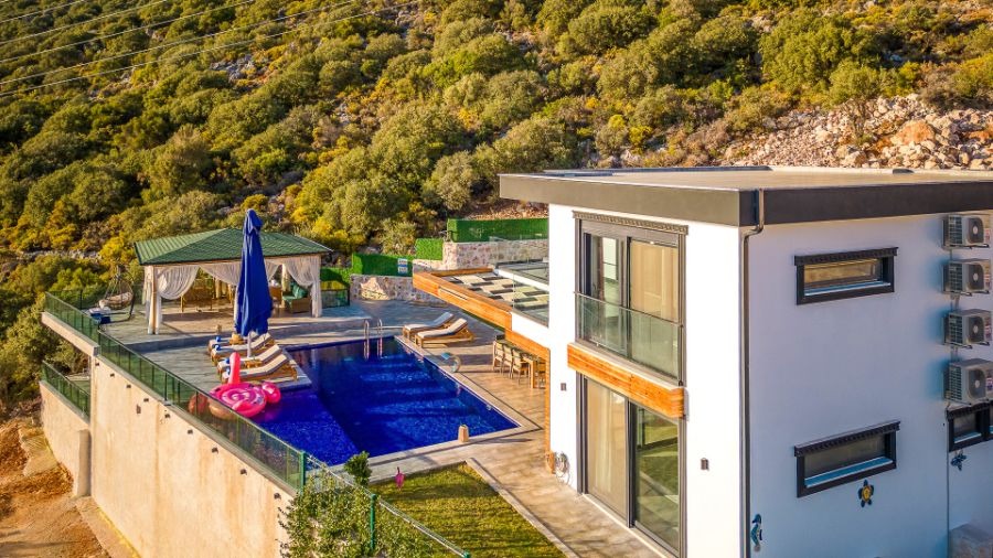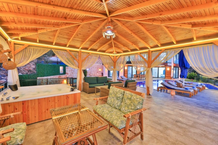 Kaş, Gökseki'de bulunan lüks tatil villaları içinde en fazla tercih edilen villalarımızdan bir tanesi olan Villa Deniz Bahçesi, 3 yatak odası, 4 banyosu, özel yüzme havuzu ve özel bahçesi ile 6 kişilik aile ve arkadaş grupları için ideal bir tatil villa alternatifidir. Son derece modern olarak dizayn edilip lüks mobilyalar ile süslemiş olduğumuz Villa Deniz Bahçesi, bir tatil villasında ihtiyaç duyabileceğiniz her türlü konfora sahiptir.