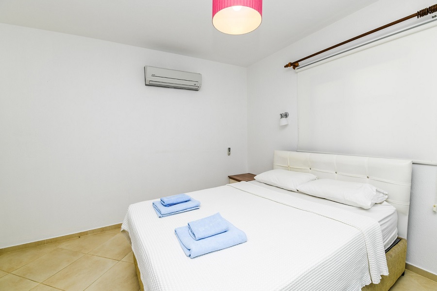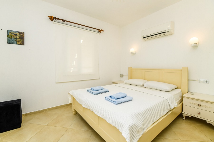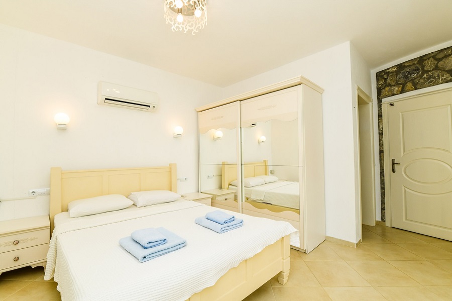1. Yatak Odası: 1çift kişilik yatak, elbise dolabı, makyaj masası, klima ve banyo,