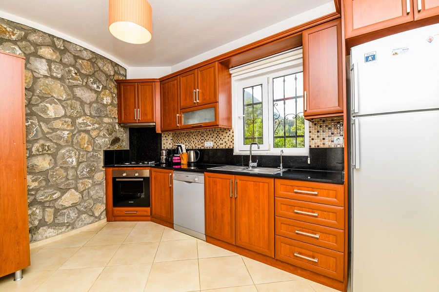 Mutfak: Buzdolabı, Bulaşık makinesi, ankastre seti, Mikrodalga fırın, su ısıtıcısı, 8 kişilik yemek takımı ve tüm mutfak gereçleri bulunmaktadır.