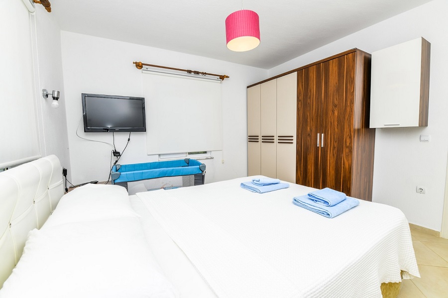 2. Yatak Odası: 1çift kişilik yatak, elbise dolabı, makyaj masası ve klima,