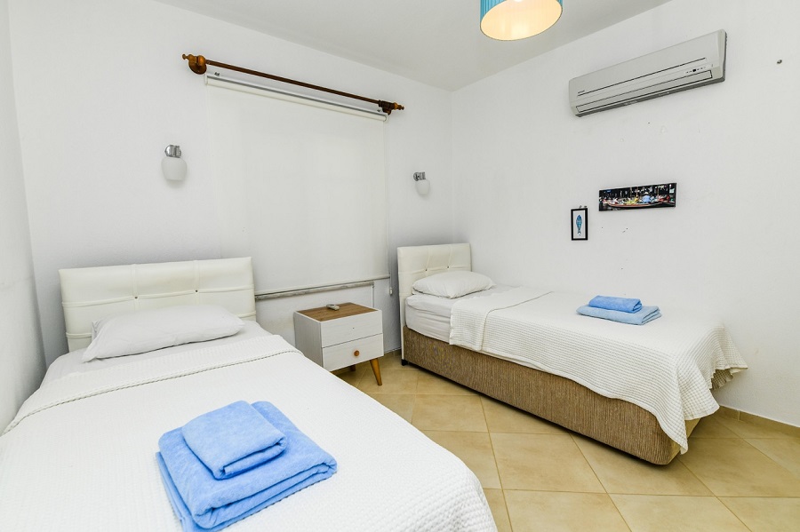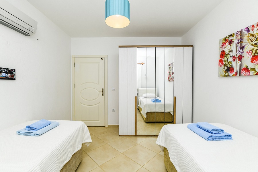 3. Yatak Odası: 2 adet tek kişilik yatak, elbise dolabı, makyaj masası ve klima,