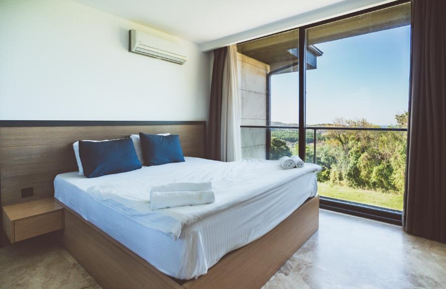 3. Yatak Odası: Çift kişilik yatak, elbise dolabı, makyaj masası, klima ve banyo yer almaktadır.