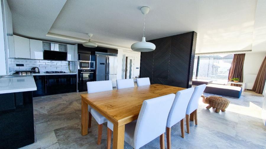 Mutfak: Buzdolabı, bulaşık makinesi, ankastre set, mikrodalga fırın, su ısıtıcı, 8 kişilik yemek takımı, ve tüm mutfak gereçleri yeteri kadar bulunmaktadır.