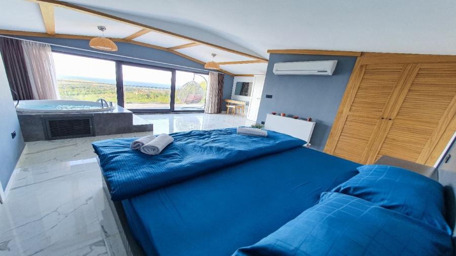 3. Yatak Odası: Çift kişilik yatak, elbise dolabı, makyaj masası, klima ve banyo yer almaktadır.
