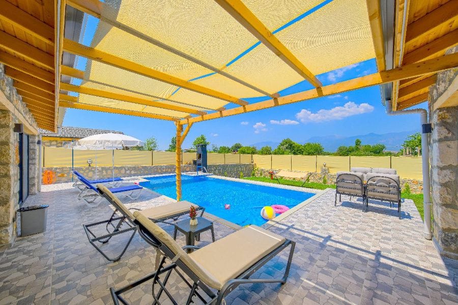 Muğla'nın Seydikemer ilçesine bağlı olan Güneşli mevkiinde bulunan Villa Moga, 2 yatak odası, 2 banyosu, özel yüzme havuzu ve özel bahçesi ile 4 kişilik aile ve arkadaş grupları için ideal bir tatil villa alternatifidir.