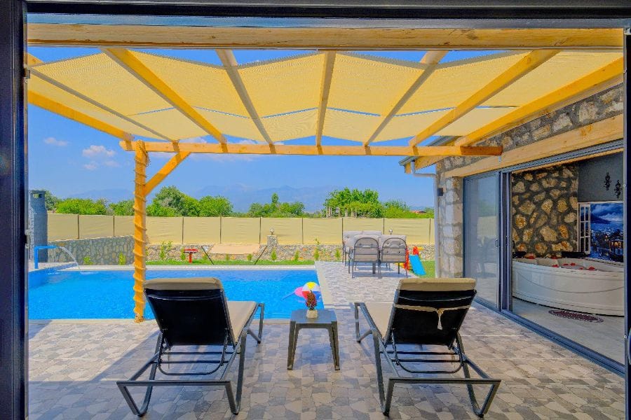 * Korunaklı özel yüzme havuzu