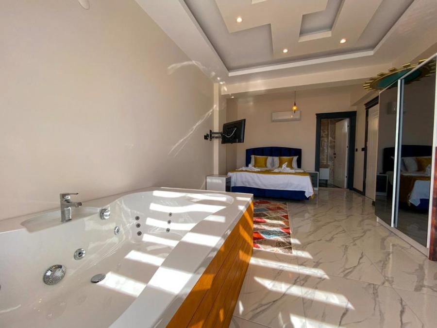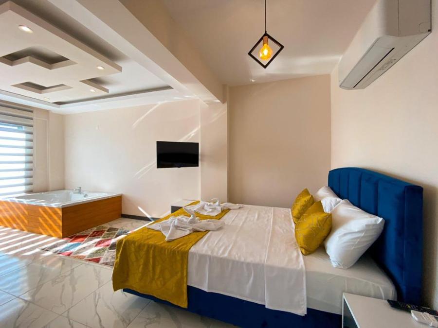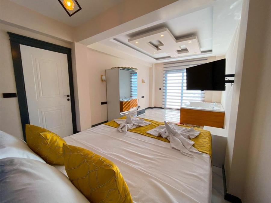 1. Yatak Odası : Çift kişilik yatak, komodin, makyaj masası, TV, klima, elbise dolabı, jakuzi, balkon, banyo ve tuvalet bulunmaktadır.