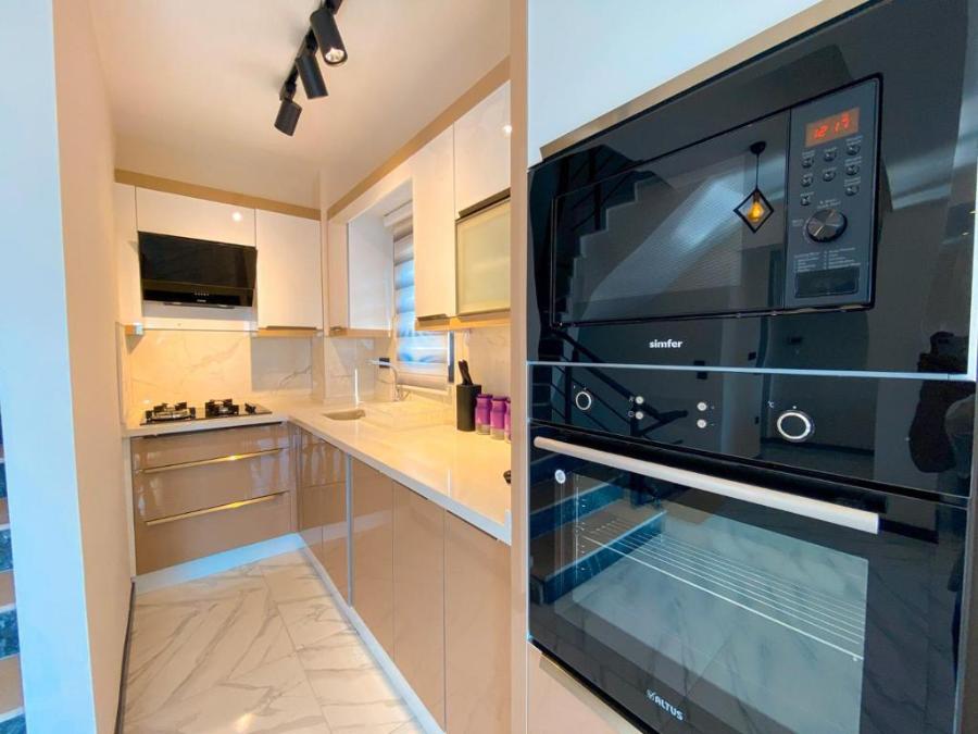 Mutfak : Modern Amerikan mutfakta buzdolabı, bulaşık makinası,fırın,4'lü ocak, mikrodalga fırın, kettle, 8 kişilik yemek masası, yemek takımları, çatal ve bıçak takımları, tencere ve tava takımları, bardaklar bulunmaktadır