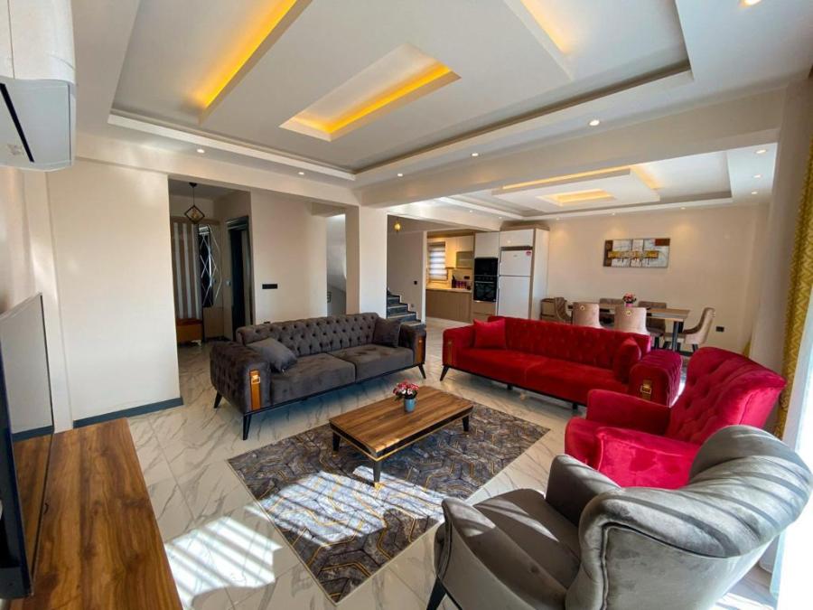 Salon : Salonumuzda oturma grubu, klima, LCD TV, sehpa, uydu alıcı bulunmaktadır. Havuz terasına çıkış yapılabilmektedir.