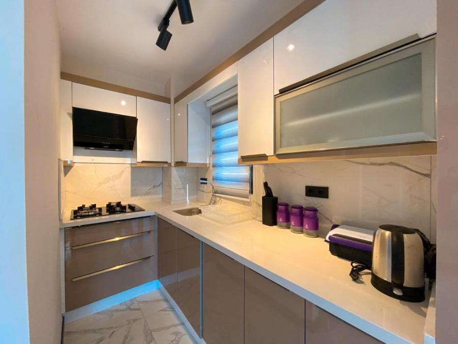 Mutfak : Modern Amerikan mutfakta buzdolabı, bulaşık makinası,fırın,4'lü ocak, mikrodalga fırın, kettle, 8 kişilik yemek masası, yemek takımları, çatal ve bıçak takımları, tencere ve tava takımları, bardaklar bulunmaktadır