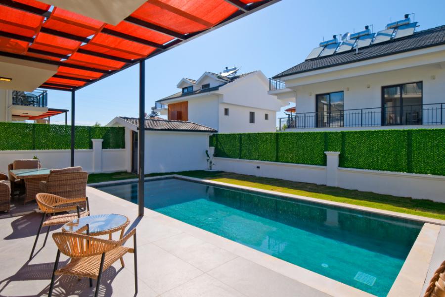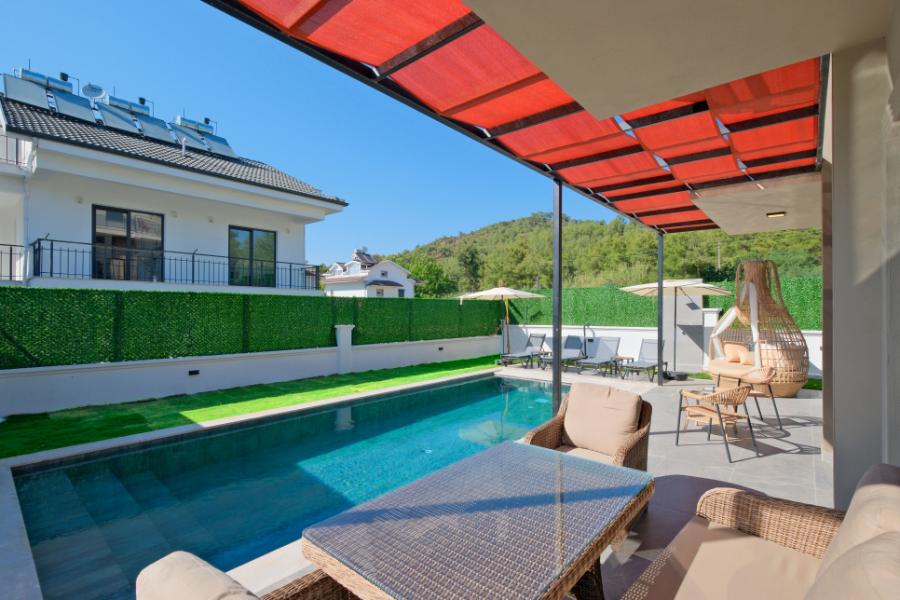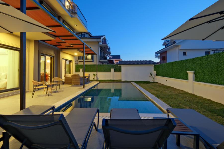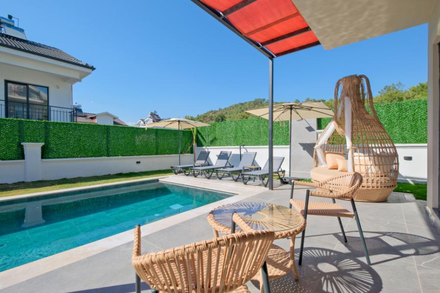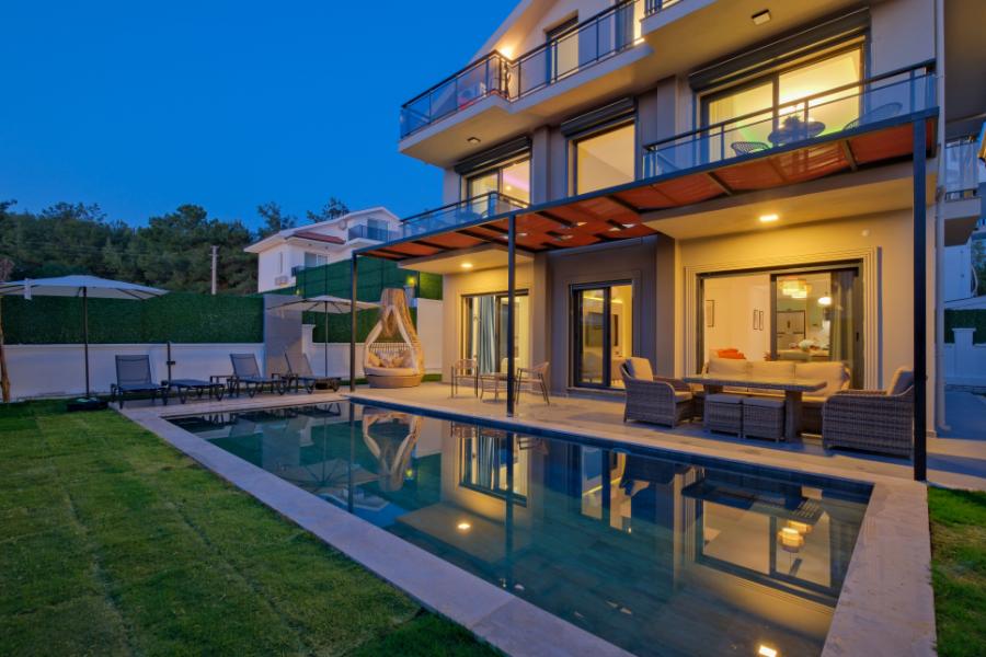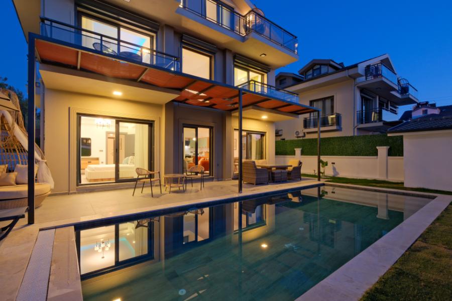 Villa Solstice 1; villa kiralama talepleriniz için tercih edeceğiniz Fethiye, Çiftlik'te bulunan tatil villaları içinde en fazla tercih edilen villalarımızdan bir tanesidir. Villa, 3 yatak odası, özel havuzu, denize ve plaja yakın konumu ile 6 kişilik aileler ve arkadaş grupları için ideal bir villa tatili seçeneği olacaktır. Son derece modern olarak dizayn edilip lüks mobilyalar ile döşenmiş olan Villa Solstice 1 bir tatil villasında ihtiyaç duyabileceğiniz her türlü konfora sahiptir.