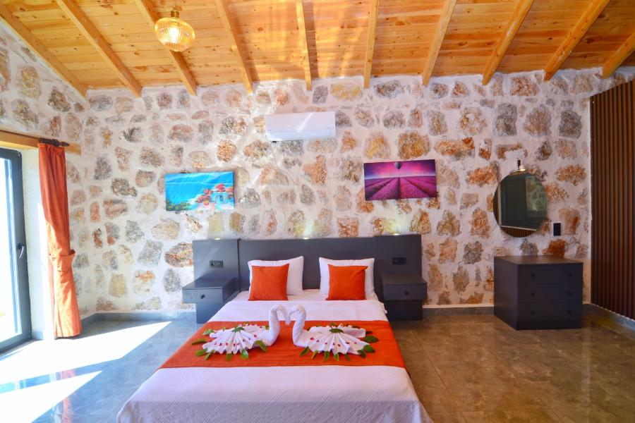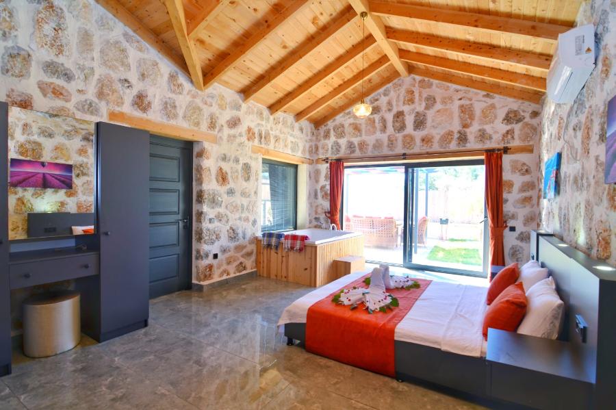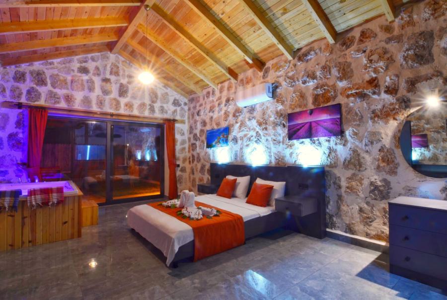 Yatak Odası: 1 çift kişilik yatak, WC + jakuzi, klima, banyo,