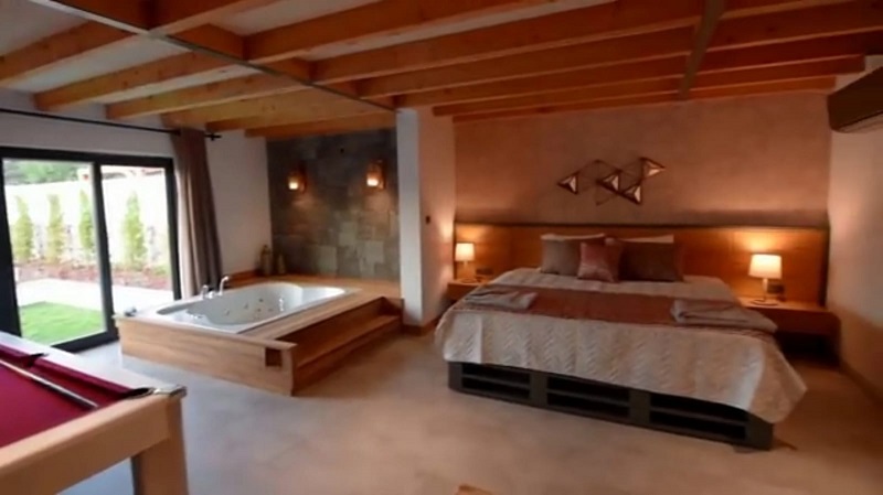 1. Yatak Odası : 1 adet çift kişilik yatak, klima, elbise odası, jakuzi, bilardo masası, Lcd Tv, özel banyo,